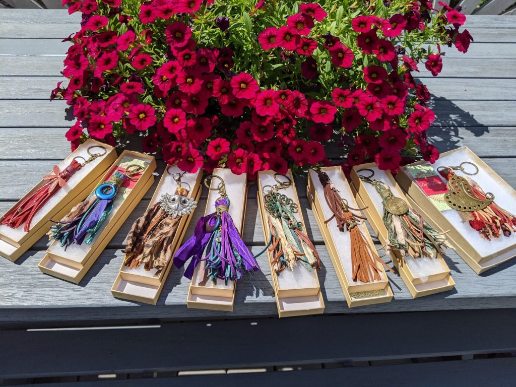 Hi there! I am a busy bee and work all the time! I love making my hand crafted purse charms, jewelry, and other new designs, and I do my best to add them to my website in the evenings..