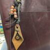 A new leather leaves design made from hand cut SoRetro leathers, 3 hand cut lilies, an antique bronze owl and lovely suede leather.  This can simply be wrapped or tied on any purse handle, backpack, carabiner or ring.