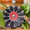 #51- New Flower Power Purse Charm. Made with a set of two SoRetro leather flower petal layers, a center leather piece and then suspended with a beautiful set of beads on a lovely clasp. I used bronzel hardware.