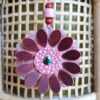 #117- New Flower Power Purse Charm. Made with a set of two SoRetro leather flower petal layers, a center leather piece and then suspended with a beautiful set of lampwork and ceramic or wooden beads on a lovely clasp. I used gunmetal hardware.