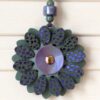 #141- New Flower Power Purse Charm. Made with a set of two SoRetro leather flower petal layers, a center leather piece and then suspended with a beautiful set of lampwork and ceramic beads on a lovely clasp. I used chromalusion hardware.