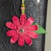 #171- New Flower Power Plus Purse Charm. Made with a set of two SoRetro leather flower petal layers, a beautiful center enameled flower pin with a little mini bee and then suspended with a beautiful set of lampwork and ceramic or wooden beads on a lovely clasp. I used ant. bronze hardware.