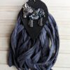 “Barnyard Baby Bull” Sari Silk Purse Charm has a sweet baby bull crystal encrusted pin pendant on a hand cut SoRetro Leather feather. I also added a swarovski crystal above baby bull and suspended a mini white cloud charm on an antique silver chain.  So adorable!