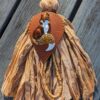 “Barnyard Cock-a-doodle” Sari Silk Purse Charm!  This is created using smoky tie dyed sari silks and the most adorable rooster pin pendant on a hand cut SoRetro leather feather!    Just adorable! Antique bronze hardware used on this new purse charm.
