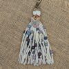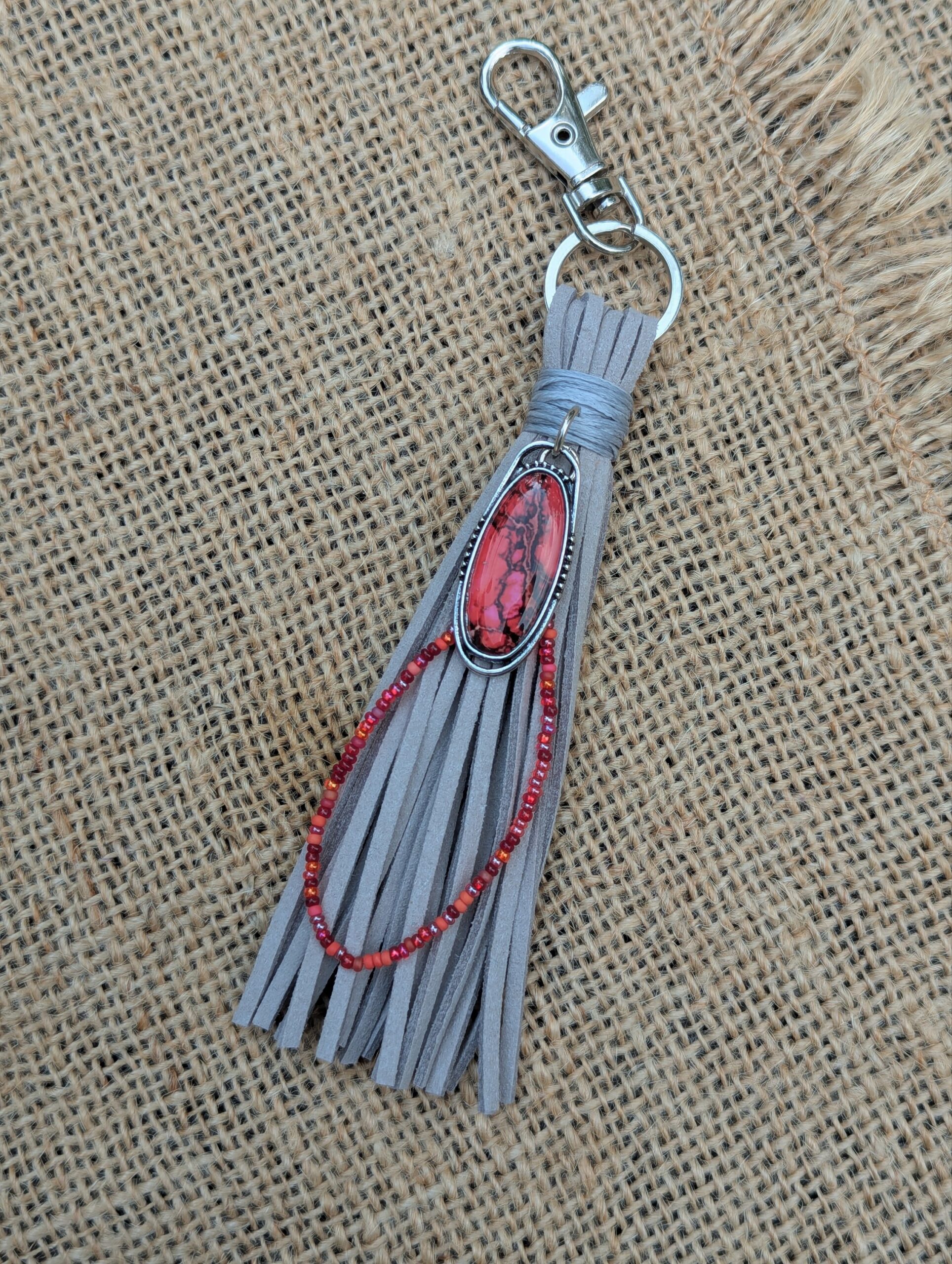 #416-Beautiful Pendant  Purse Charm tassel is made with a lovely vintage look red pendant suspended on hand wrapped strands of vegan leather.  I then added a double strand of sweet seed beads.