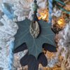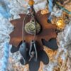 “Bee and Honeycomb” with Leaves and Lilies Leather Purse Charm . A lovely set of hand cut SoRetro leather leaves suspended with a beautiful set of leather hand cut lilies. Each lily has a small hand dyed wooden bead in the center. Also included is a very unusual hand wrapped and hand stitched leather bead just below the swivel clasp. I have also included a beautiful bee and honeycomb porcelain pendant. This purse charm is made with antique bronze hardware. Approx. length is 7.5 inches.