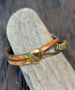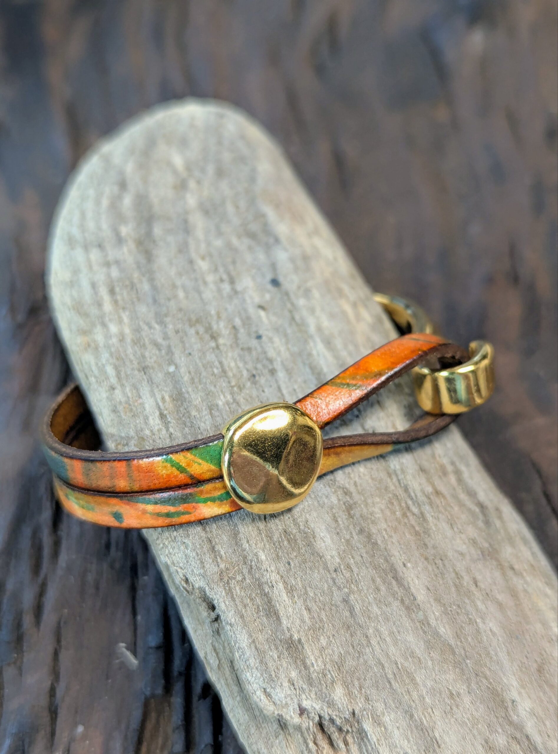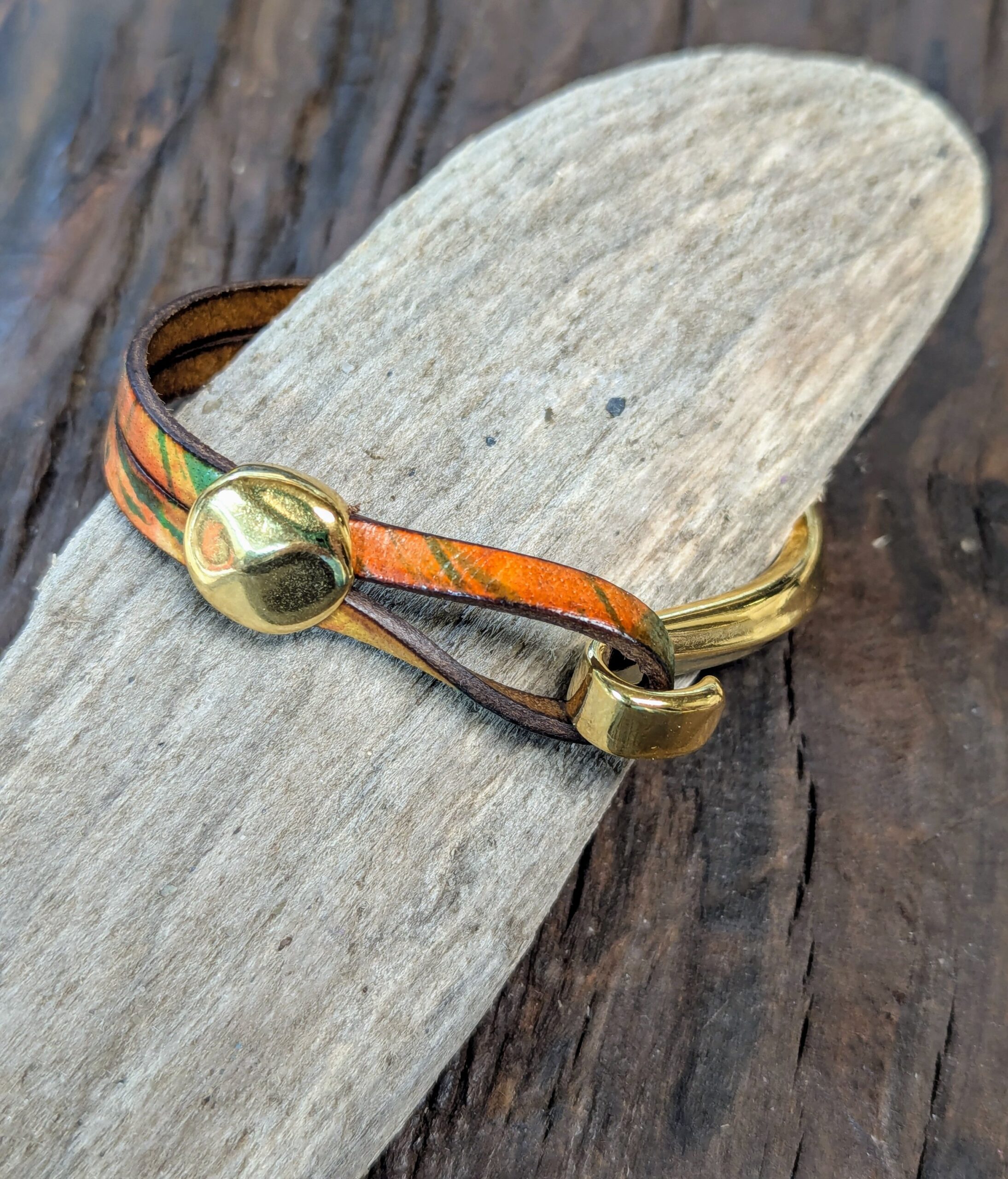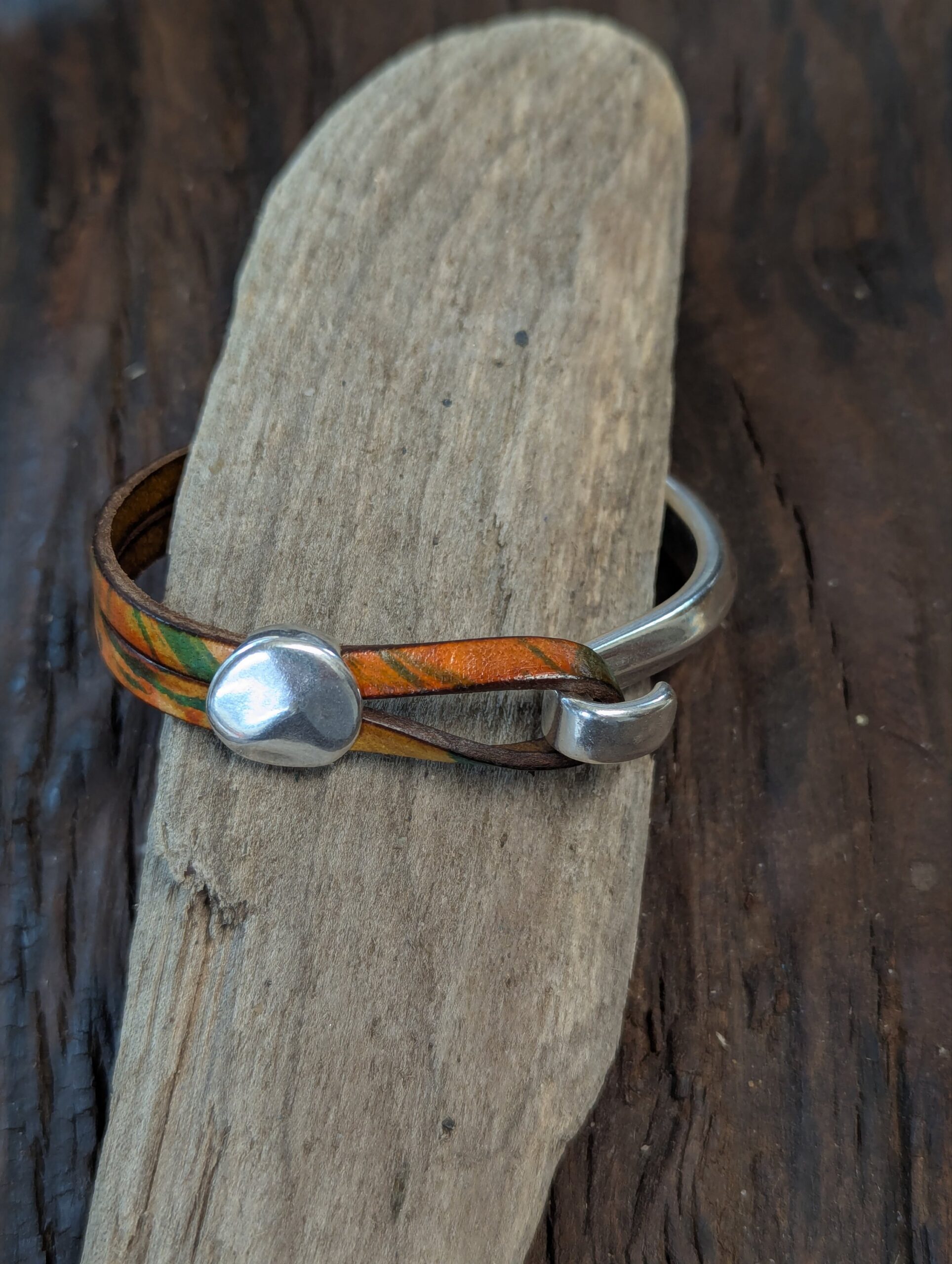 Boho Half Cuff Flat Multi Color Camouflage Leather Bracelet and Slide