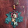 #530-Christmas Trees Leather Purse Charm is made using SoRetro leathers. I suspended these together and used gunmetal hardware.