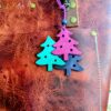 #529-Christmastime Flower Leather Purse Charm. Made with a set of two SoRetro leather flower petal layers. I then suspended it with a lovely leaf behind the double layer of petals. The hardware I used on this is chromalusion!