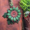 #517- Christmastime Flower Power Leather Purse Charm. Made with a set of two SoRetro leather flower petal layers and a hand stitched center! I then suspended it with a lovely leaf behind the double layer of petals. The hardware I used on this is antique bronze!
