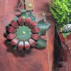 #518- Christmastime Flower Power Leather Purse Charm. Made with a set of two SoRetro leather flower petal layers and a hand stitched center! I then suspended it with a lovely leaf behind the double layer of petals. The hardware I used on this is gunmetal!