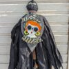 “Dolled Up to Party” Boho Tie Dyed Sari Silk Purse Charm!  This is created using beautiful hand dyed sari silks and a super fun acrylic girl pin pendant on a hand cut SoRetro leather feather!  Fabulous Dahling!!  Black hardware used on this new purse charm.