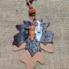 #495-Fall Vibes Purse Charm. An adorable white giraffe pin pendant on this hand cut SoRetro leather oak leaf. This purse charm is made using ant. bronze hardware and lovely porcelain beads above the charms! You will love this sweet Fall creation!