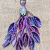 #499-Fall Vibes Purse Charm. An adorable giraffe pin pendant on this hand cut SoRetro leather oak leaf. This purse charm is made using ant. bronze hardware and lovely porcelain beads above the charms! You will love this sweet Fall creation!