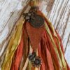 “Feather Fantasy” Sari Silk Purse Charm is sure to get compliments! Lovely hand dyed by me sari silks, a beautiful verdigris feather pendant with a sweet cut crystal above it on a hand cut SoRetro leather feather with a lovely enameled painted mini feather charm. Amazing! All antique bronze hardware.