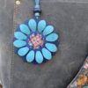 #203- New Flower Power Button Leather Purse Charm. Made with a set of two SoRetro leather flower petal layers, a hand stitched center with a wooden button sewn onto the center! I then suspended with a beautiful set of lampwork and ceramic or wooden beads on a lovely clasp.