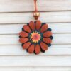 #207- New Flower Power Button Leather Purse Charm. Made with a set of two SoRetro leather flower petal layers, a hand stitched center with a wooden button sewn onto the center! I then suspended with a beautiful set of lampwork and ceramic or wooden beads on a lovely clasp. I have used chromalusion hardware.