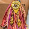 #260- New Flower Power Button Leather Purse Charm. Made with a set of two SoRetro leather flower petal layers and a sweet flower center! I then suspended with a beautiful set of lampwork and ceramic or wooden beads on a lovely clasp. The hardware I used on this is gunmetal!