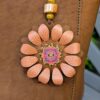 #264- New Flower Power Button Leather Purse Charm. Made with a set of two SoRetro leather flower petal layers and a hand stitched center with a wooden button! I then suspended with a beautiful set of lampwork and ceramic or wooden beads on a lovely clasp. The hardware I used on this is antique bronze!