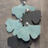 #272- New Flower Power Button Leather Purse Charm. Made with a set of two SoRetro leather flower petal layers and a hand stitched center with a wooden button! I then suspended with a beautiful set of lampwork and ceramic or wooden beads on a lovely clasp. The hardware I used on this is antique bronze!