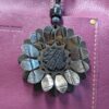 #382- New Flower Power Button Leather Purse Charm. Made with a set of two SoRetro leather flower petal layers, a hand stitched center around a beautiful flower button center! I then suspended it with a beautiful set of lampwork and ceramic beads on a lovely clasp. The hardware I used on this is gunmetal!