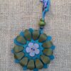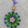 #410- New Flower Power Button Leather Purse Charm. Made with a set of two SoRetro leather flower petal layers, a hand stitched center around a beautiful flower button center! I then suspended it with a beautiful set of lampwork and ceramic beads on a lovely clasp. The hardware I used on this is ant. bronze but I can change it to another color if you put a request in the notes section or message me here: https://www.facebook.com/DazzleDesignsJewelry