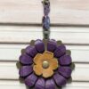 #189- New Flower Power Purse Charm. Made with a set of two SoRetro leather flower petal layers, a center leather flower piece and then suspended with a beautiful set of lampwork and ceramic or wooden beads on a lovely clasp. I used ant. bronze hardware.