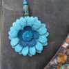 #201- New Flower Power Purse Charm. Made with a set of two SoRetro leather flower petal layers, a center leather flower piece which I then suspended with a beautiful set of lampwork and ceramic or wooden beads on a lovely clasp. I used antique bronze hardware.
