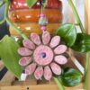 #28- New Flower Power Purse Charm. Made with a set of two SoRetro leather flower petal layers, a center leather piece and then suspended with a beautiful set of lampwork and ceramic beads on a lovely clasp. I used gunmetal hardware.