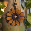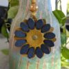 #76 New Flower Power Purse Charm. Made with a set of two SoRetro leather flower petal layers, a center leather piece and then suspended with a beautiful set of lampwork and wooden beads on a lovely clasp. I used antique bronze hardware.