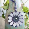 #78 New Flower Power Purse Charm. Made with a set of two SoRetro leather flower petal layers, a center leather piece and then suspended with a beautiful set of glass and ceramic beads on a lovely clasp. I used chromalusion hardware.