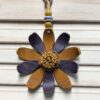 #191- New Flower Power Plus Purse Charm. Made with a set of three SoRetro leather flower petal layers, a sweet mini leather flower center and all suspended with a sweet set of lampwork and ceramic or wooden beads on a lovely clasp. I used chromalusion hardware.