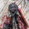“I’m a Little Teapot” with beautiful shades of hand dyed rainbow Sari Silks, a beautiful teapot pin pendant on a hand cut SoRetro leather feather. All bronze hardware used.
