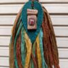 A beautiful “Iridescent Moth Pendant” Purse Charm with a lovely iridescent moth pin Pendant suspended on a hand cut SoRetro Leather feather. I then added a strand of silver chain and two beautiful glazed and hand painted glass beads on some lovely hand leather wrapped navy strands. Silver hardware is used for this Purse Charm.