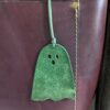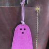 Adorable little leather ghost purse charm. Hand cut from SoRetro leather with a coordinating vegan suede strand and bronze swivel clasp. These are approximately 5-6 inches long.