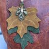 “Lock and Key Leaves” Purse Charm. A sweet set of key and lock plate on these two hand cut SoRetro leather leaves. This purse charm is made with bronze hardware and a beautiful ceramic fired bead above the bronze key and lock plate! Thanks for looking!
