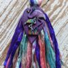 “Lovable Lamb” Sari Silk Purse Charm! Lovely hand dyed sari silks, the most gorgeous pearl encrusted lovable lamb pin pendant on a hand cut SoRetro leather feather! I then also added a pair of sweet butterflies. This purse charm is sooo pretty! Antique bronze hardware used on this adorable purse charm.