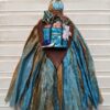 “Magic Mushrooms” with beautiful new shades of my hand dyed Sari Silks, and a lovely pair of crystal encrusted mushrooms pin pendant on a hand cut SoRetro leather feather!! All silver hardware used.