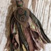“Magical Mystical Gnome” Purse Charm . This very whimsical purse charm comes with an adorable assortment of mini charms, including a big puffy pink mushroom, a “happy thoughts” mini charm, a set of colorful beads and enameled green leaf, and all on colorful strands of vegan friendly suede leather strands. Chromalusion hardware for this Purse Charm.