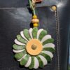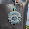 #177- Momma Turtle New Flower Power Purse Charm. Made with a set of two SoRetro leather flower petal layers, a center that I have added is the sweetest momma turtle charm pin and then suspended it all with a beautiful set of lampwork and ceramic or wooden beads on a lovely clasp. I used gunmetal hardware.