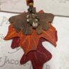 “My Maple Leaf and Acorns” Purse Charm . A lovely set of leaves suspended with a beautiful bronze folded maple leaf and tiny acorns. This purse charm has bronze hardware and a beautiful glazed ceramic bead and 2 wooden beads above the pendant! You will love the beautiful colors of this Fall creation!