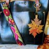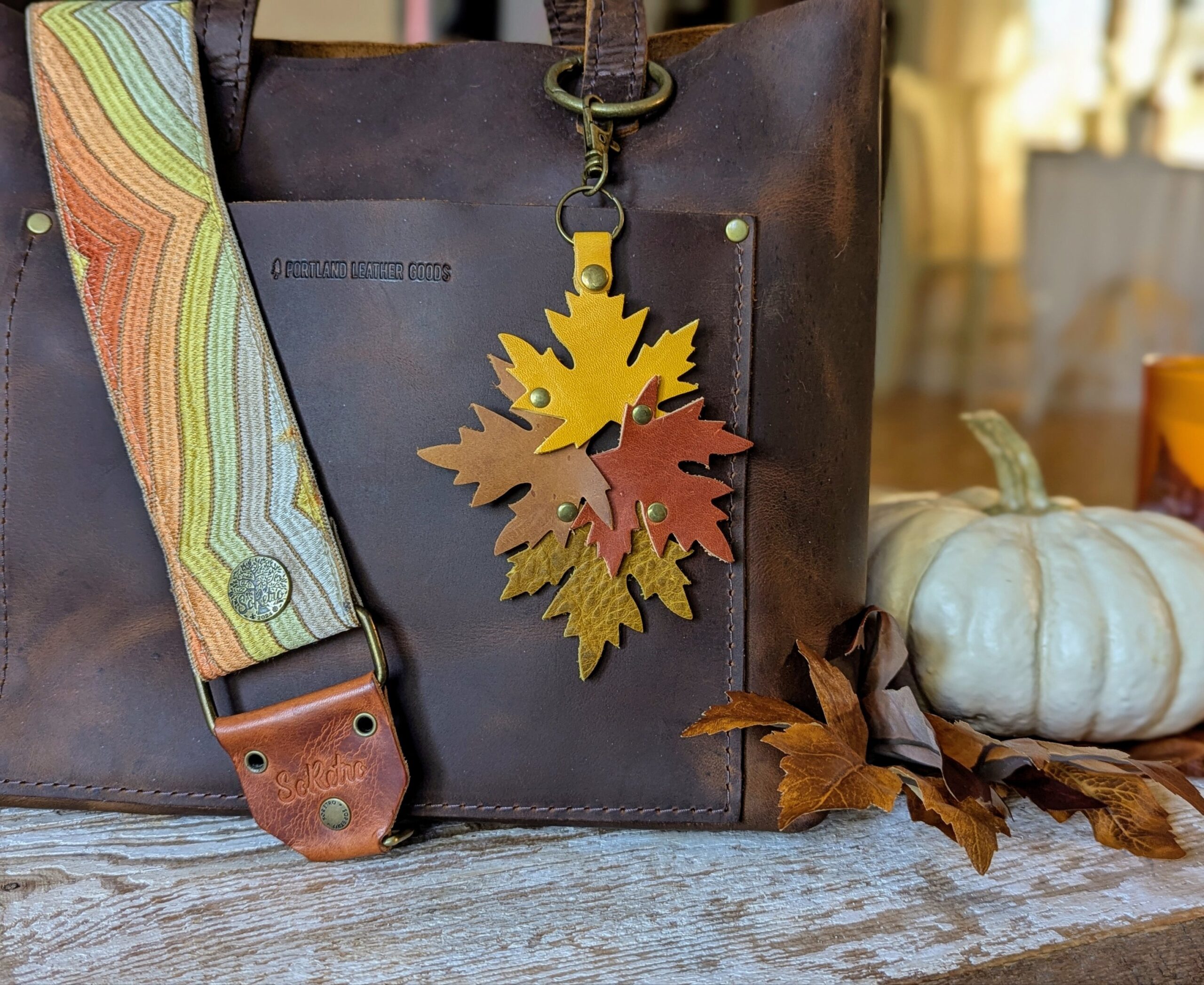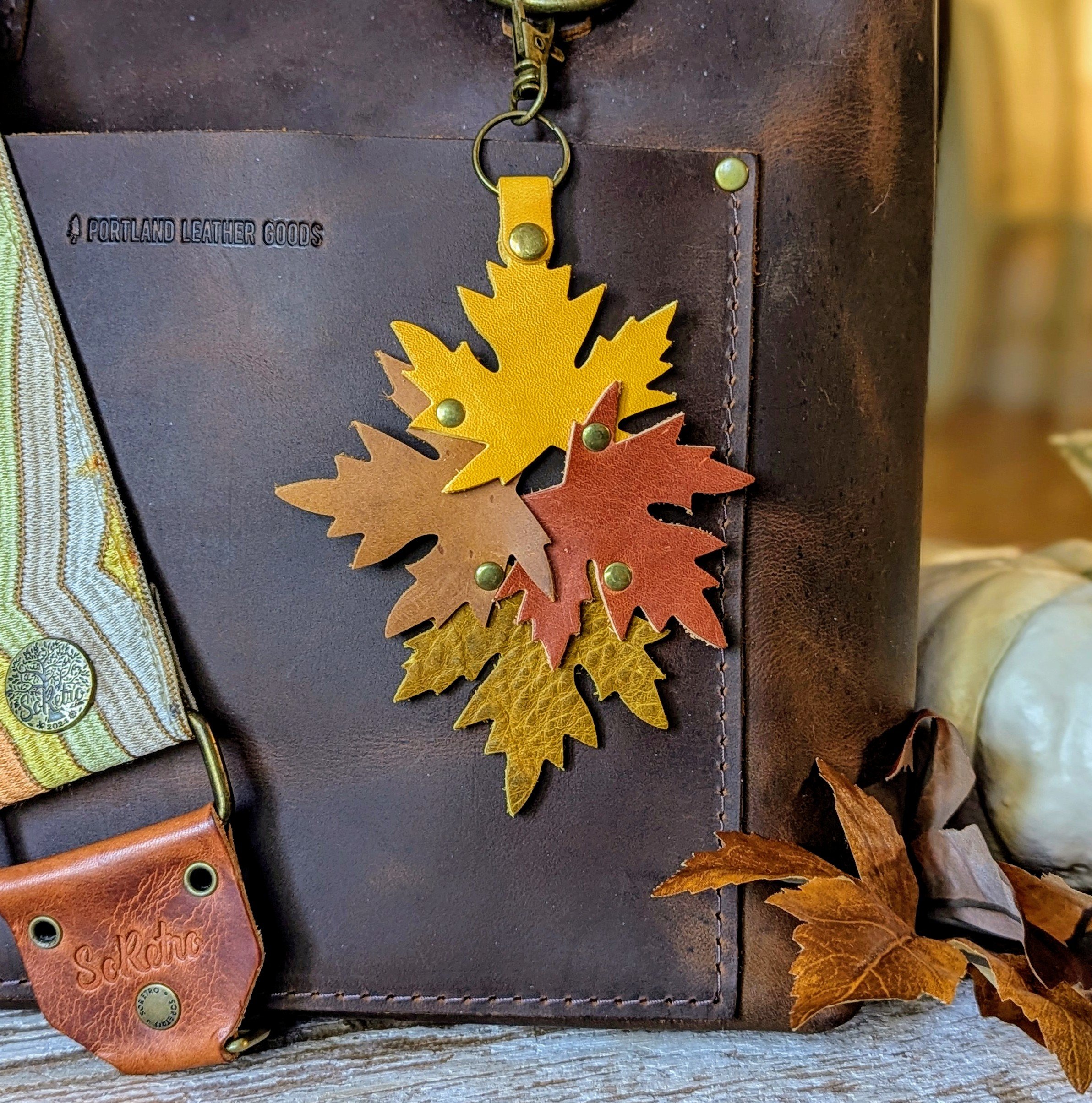 #467-New Style Fall Leaves Leather Purse Charm is made using SoRetro leathers. I suspended these together using antique bronze hardware.