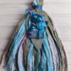 “Orchid Delivery” Silk Purse Charm! Lovely Ombre Sari Silks hand dyed by me with added twisted silk yarns and the sweetest orchid pin pendant displaying her gorgeous blossoms on a hand cut SoRetro leather feather. I then added a set of double hand cut leather lilies on either side. Chromalusion (rainbow) hardware.