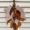 “Play in the Leaves” Sari Silk Purse Charm! Lovely shades of my hand dyed Sari Silks and twisted yarns with a lovely bronze folded maple leaf pendant and two separate strands on either side of an assortment of beautiful beads with hand wired details. All bronze hardware on this lovely purse charm!