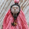 “Rebel Randy Rooster” Purse Charm with a colorful rooster/chicken pin Pendant suspended on a hand cut SoRetro Leather feather on some lovely vegan suede strands. Bronze hardware is used for this Purse Charm.