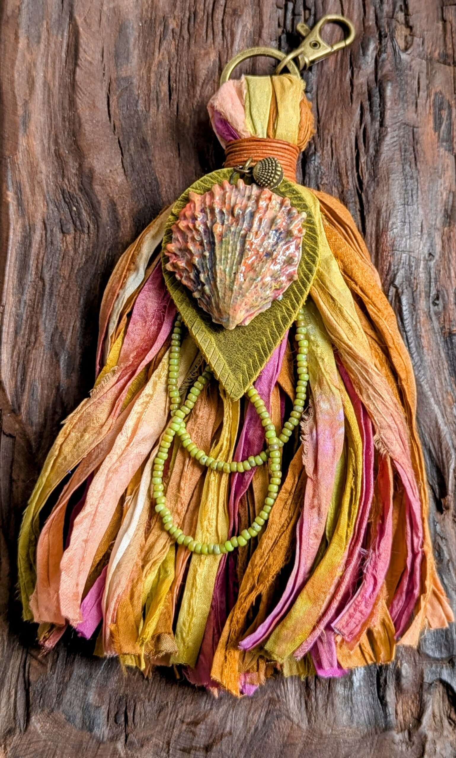 Sari Silk “One of a Kind” Seashell Purse Charm-AP121