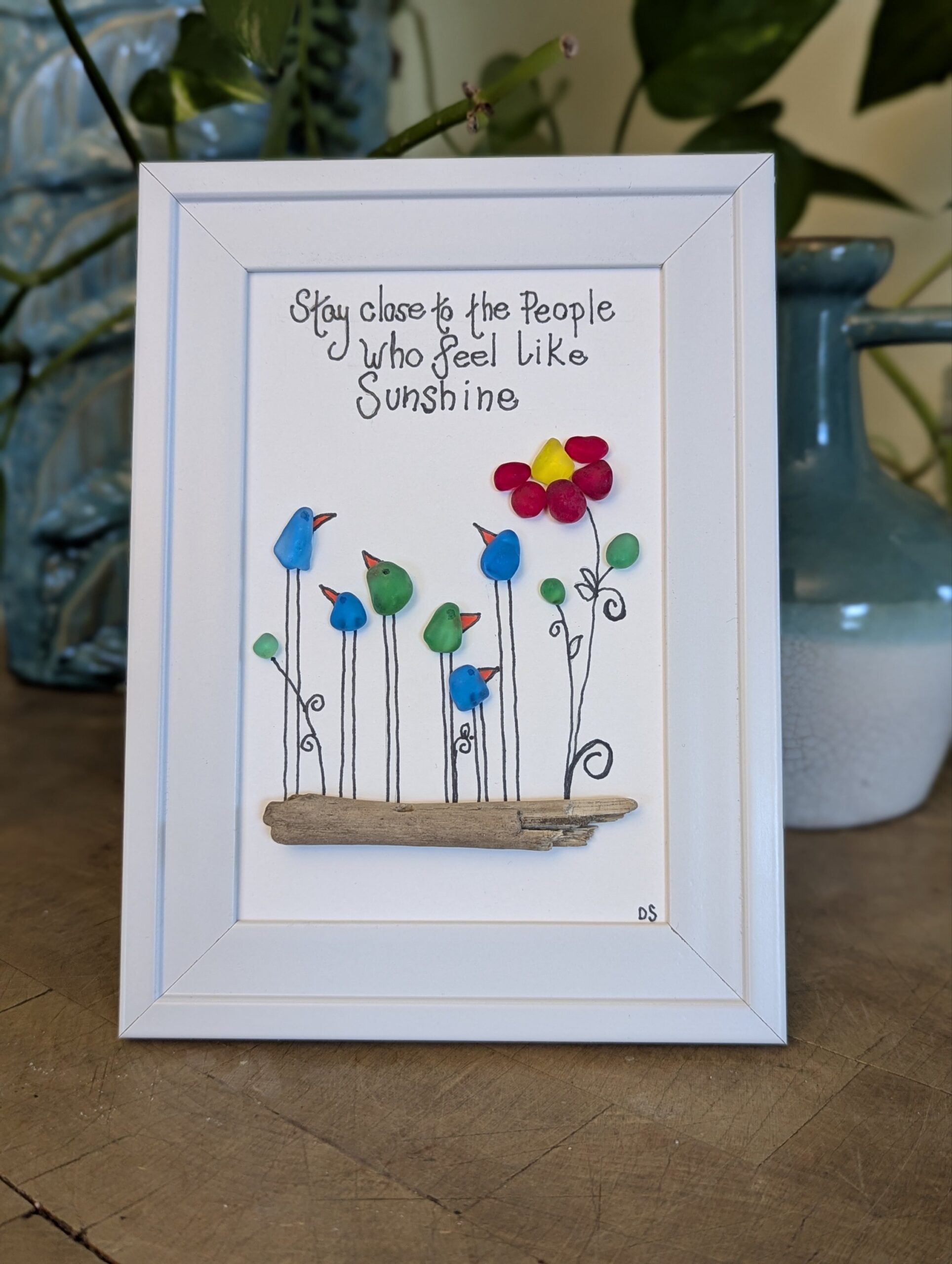 “Stay Close to the People Who feel like Sunshine” sea glass art!