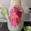 #645 “Shamrock Time in Blues” Leather Purse Charm Tassel is made using beautiful 3 and 4 leaf SoRetro leather clovers suspended on a vegan suede purse charm tassel. I used gunmetal hardware. Approx. length is 6.5-7 inches.