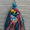 “Shopping Anyone?” Boho Black Sari Silk Purse Charm! This is created using hand dyed sari silks and a super fun acrylic girl pin pendant on a hand cut SoRetro leather feather! I also added a strand of beads with a makume gane (Japanese layering technique) large ball bead. Fabulous Dahling!! Black hardware used on this new purse charm.