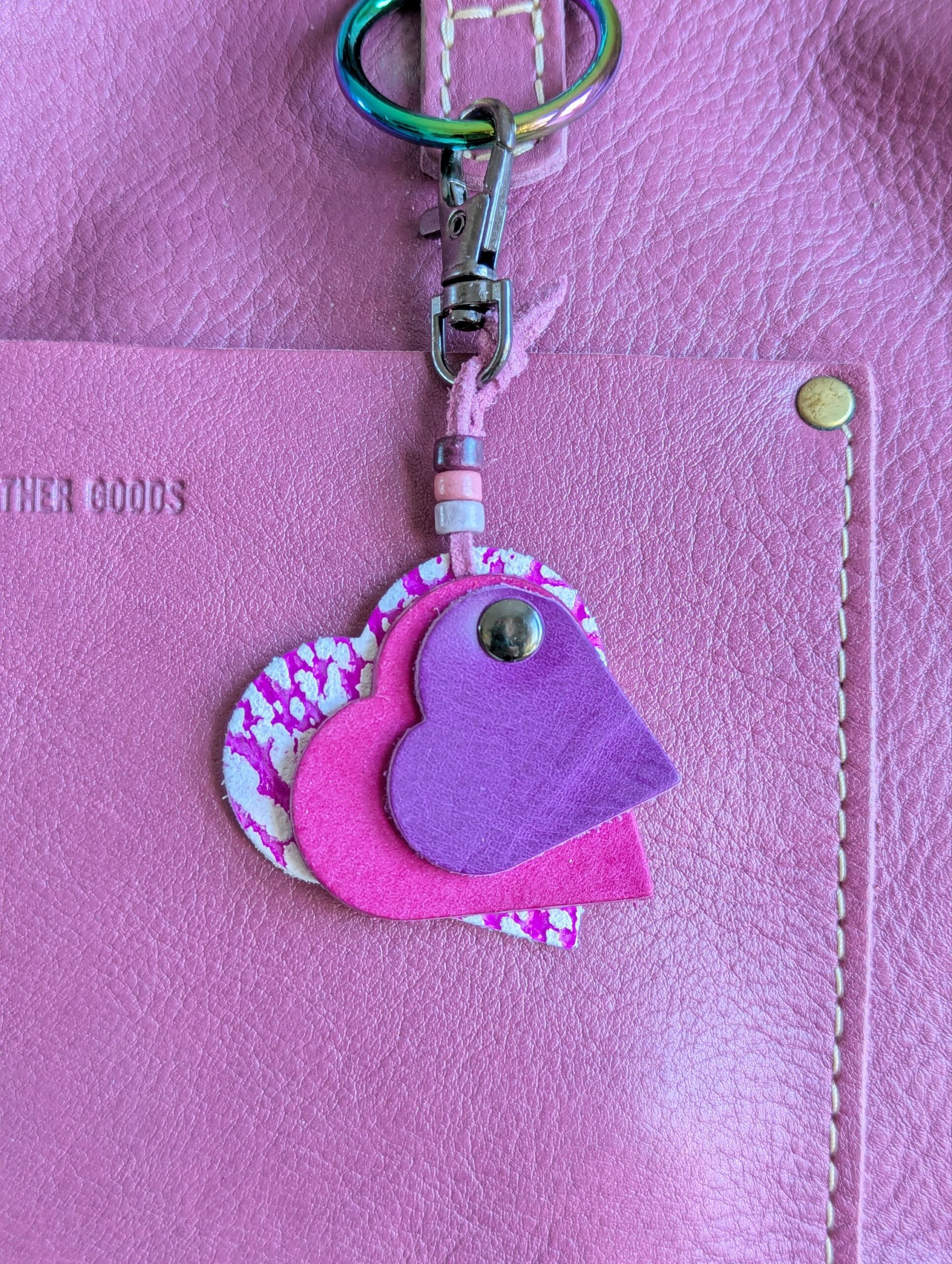 #572- A sweet trio of mini SoRetro leather hearts with beads and gunmetal hardware.